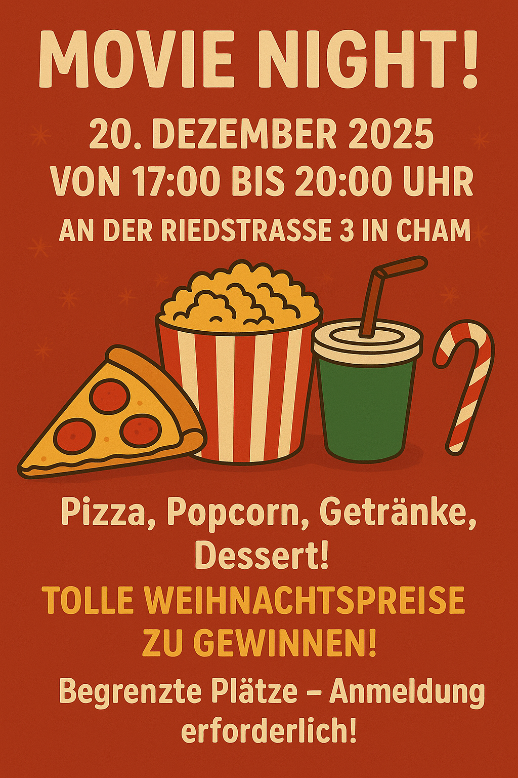 20.12.25 Movie Night Popcorn, Pizza, Dessert, Getränke ab 30 Fr.